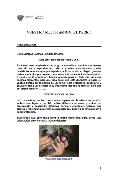 NUESTRO MEJOR AMIGO EL PERRO AUTOR AMIGOS CANINOS DOSSHIR