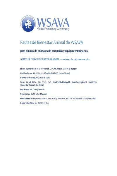 PAUTAS DE BIENESTAR ANIMAL DE WSAVA WSAVA
