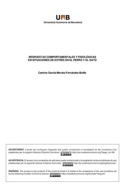 RESPUESTAS COMPORTAMENTALES Y FISIOLOGICAS EN SITUACIONES DE ESTRES EN EL PERRO Y EL GATO AUTOR CAMINO GARCIAMORATO FERNANDEZBAILLO