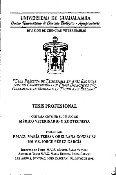 GUIA PRACTICA DE TAXIDERMIA EN AVES EXOTICAS PARA SU CONSERVACION CON FINES DIDACTICOS YU ORNAMENTALES MEDIANTE LA TECNICA DE RELLENO AUTOR MARIA TERESA ORELLANA GONZALEZ Y JORGE PEREZ GARCIA