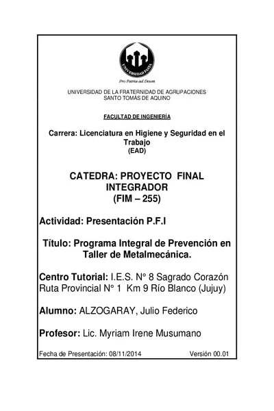 PROGRAMA INTEGRAL DE PREVENCION EN TALLER DE METALMECANICA AUTOR ALZOGARAY JULIO FEDERICO